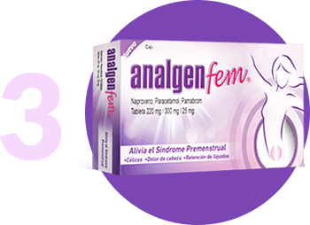 ¡Sí puedes aliviar ese cólico característico del síndrome premenstrual, el dolor de cabeza y la retención de líquidos! Analgen Fem® es un analgésico y antiinflamatorio de triple acción para el tratamiento del síndrome premenstrual y si lo tomas unos días antes, ¡puedes prevenir su aparición! Ya lo sabes, con Analgen Fem®, haz que esos días pasen como si nada.